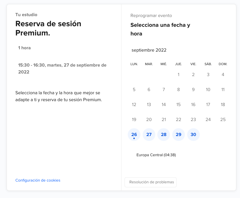 Calendly es una herramienta que nos permite crear calendarios para captar las reservas que nuestros clientes podrán contratar. Nos permite configurar disponibilidad de días, rangos de horas, mensajes personalizados, recordatorios por SMS y email, tramitar pagos, etc. La configuraremos según vuestras necesidades.